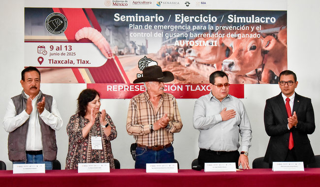 Con la participación de más de 100 profesionales de la medicina veterinaria de Tlaxcala, Puebla, Veracruz, Estado de México, Hidalgo y Guerrero, la Secretaría de Agricultura y Desarrollo Rural (AGRICULTURA) del Gobierno de México realiza el Cuarto Seminario, Ejercicio y Simulacro para la Prevención del Gusano Barrenador del Ganado (GBG), con el objetivo de fortalecer las capacidades técnicas en entidades libres de la plaga.