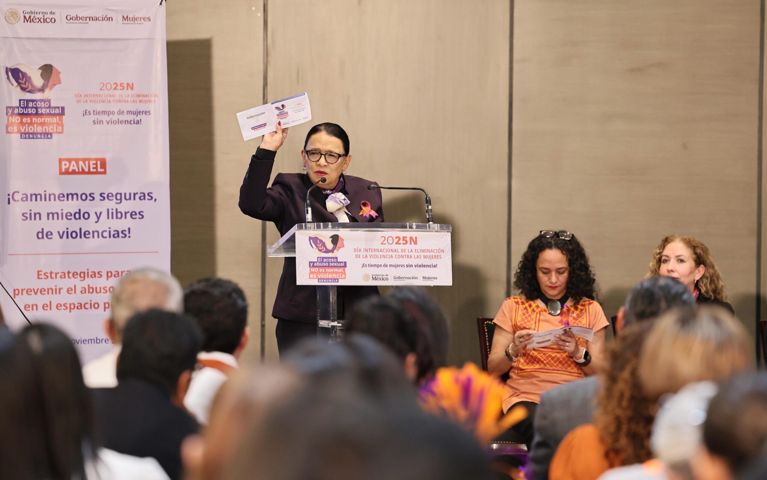 En el evento estuvieron la subsecretaria del Derecho a una Vida Libre de Violencias de la Secretaría de las Mujeres, Ingrid Gómez; la secretaria general del Consejo Nacional de Población, Gabriela Rodríguez; la presidenta del Consejo Nacional para Prevenir la Discriminación, Claudia Oliva Morales.